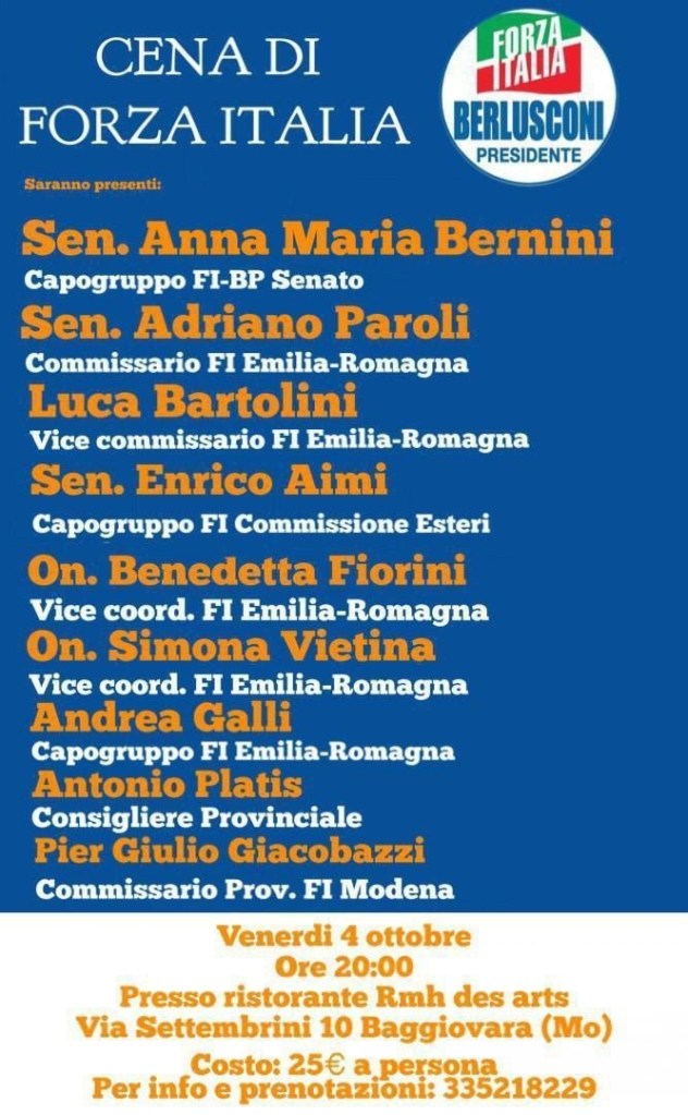 Senza categoria SALVA LA DATA – VENERDI’ 4 OTTORE VI ASPETTIAMO ALLA CENA DI FORZA ITALIA Condividi: Condividi su X (Si apre in una nuova finestra) X Condividi su Facebook (Si apre in una nuova finestra) Facebook Mi piace Caricamento... Correlati