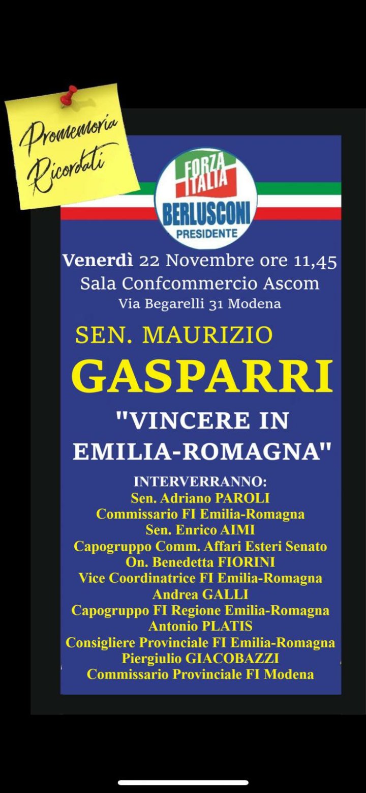 Senza categoria Si parte x la Campagna Elettorale di Forza Italia in Emilia Romagna sabato 23 novembre a Bologna Condividi: Condividi su X (Si apre in una nuova finestra) X Condividi su Facebook (Si apre in una nuova finestra) Facebook Mi piace Caricamento... Correlati