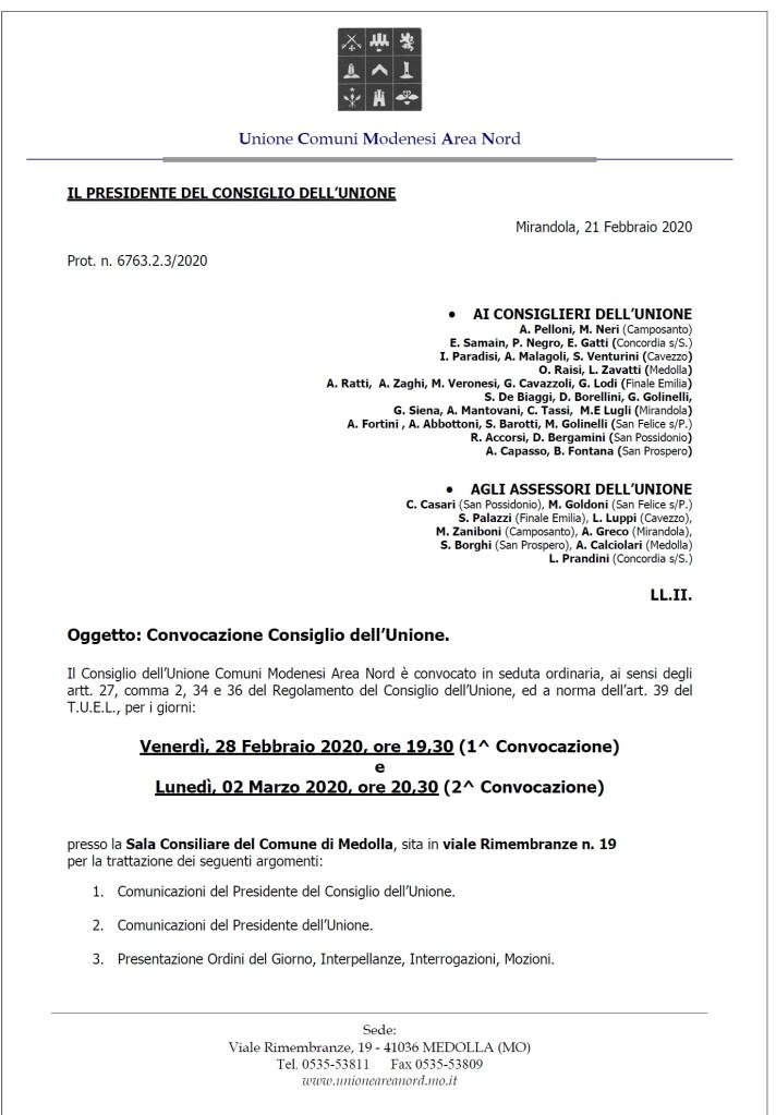 Senza categoria Giovedì 27/02 Consiglio Comunale a Finale Emilia – Venerdì 28/02 Consiglio UCMAN…… UNIONE DEI COMUNI AREA NORD Condividi: Condividi su X (Si apre in una nuova finestra) X Condividi su Facebook (Si apre in una nuova finestra) Facebook Mi piace Caricamento... Correlati