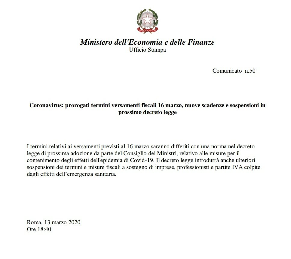 Senza categoria Prorogate le scadenze fiscali del 16 marzo causa emergenza Corana Virus ⬇️ Condividi: Condividi su X (Si apre in una nuova finestra) X Condividi su Facebook (Si apre in una nuova finestra) Facebook Mi piace Caricamento... Correlati
