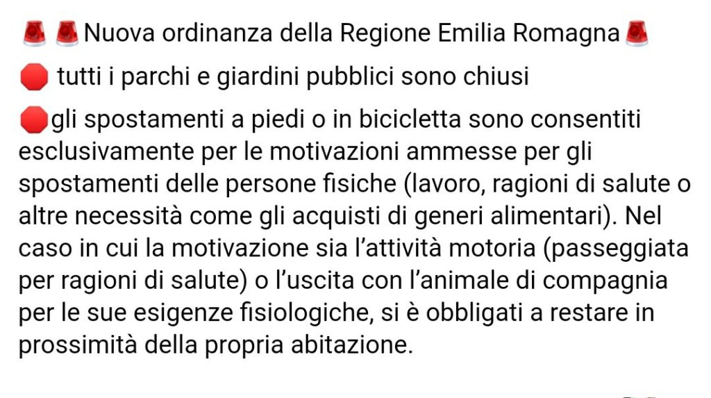 Senza categoria NUOVA ORDINANZA DELLA REGIONE EMILIA ROMAGNA… DOBBIAMO STARE A CASA❗❗❗❗⬇️ LE PASSEGGIATE ED I GIRI IN BICICLETTA…. AD APRILE 👌 Condividi: Condividi su X (Si apre in una nuova finestra) X Condividi su Facebook (Si apre in una nuova finestra) Facebook Mi piace Caricamento... Correlati