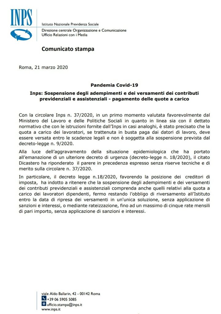 GOVERNO E DECRETI Nuovo decreto – decisioni sulla sospensione dei contributi Inps a carico dei dipendenti, cassa integrazione e contributi ai lavoratori autonomi/P.IVA 🇮🇹❗⬇️ Contributi INPS Condividi: Condividi su X (Si apre in una nuova finestra) X Condividi su Facebook (Si apre in una nuova finestra) Facebook Mi piace Caricamento... Correlati