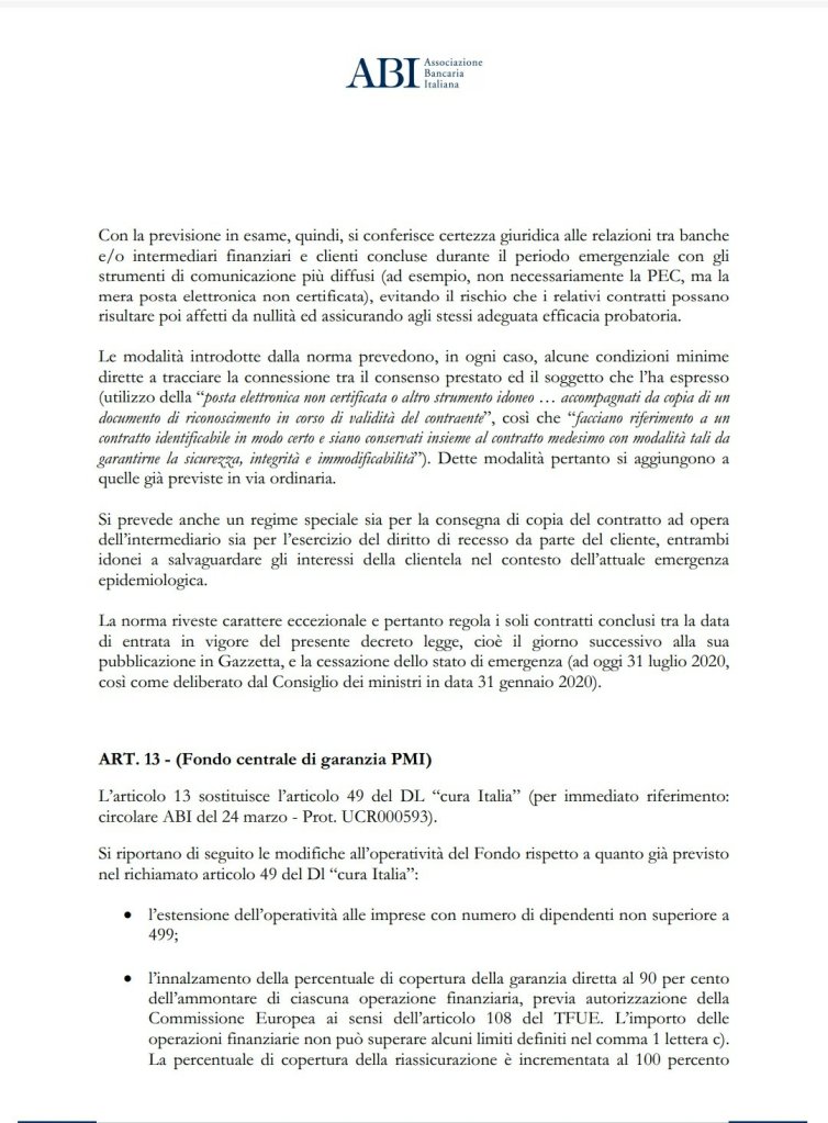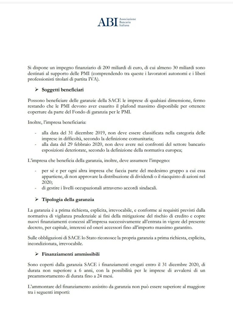 ECONOMIA E FINANZA Ecco la Circolare ABI (Associazione Bancaria Italia) nella quale vengono date le disposizioni alle.Banche su.come “gestire” i finanziamenti del Decreto “liquidità”❗⬇️ Condividi: Condividi su X (Si apre in una nuova finestra) X Condividi su Facebook (Si apre in una nuova finestra) Facebook Mi piace Caricamento... Correlati