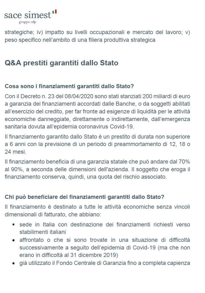 GUIDA ALLE GARANZIE RILASCIATE DALLO STATO (SACE – GRUPPO CDP) PER I FINANZIAMENTI PREVISTI DAL DECRETO LIQUIDITÀ’