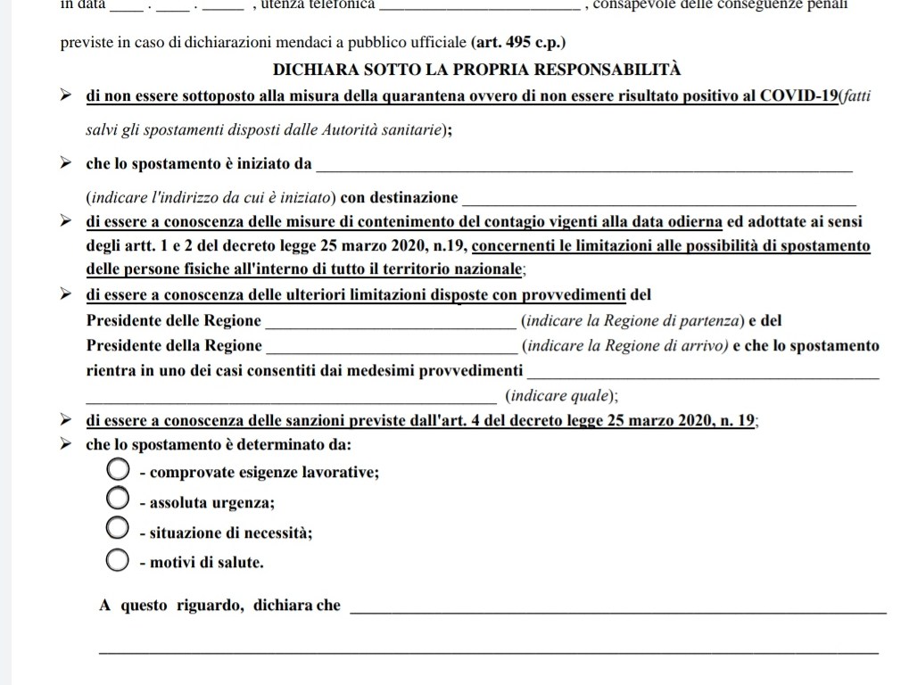 La nuova Autocertificazione NON SERVE SE SI VA AL LAVORO PURCHÉ AL CONTROLLO SI ESIBISCA IN TESSERINO O UNA DICHIARAZIONE AZIENDALE