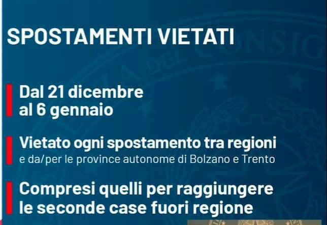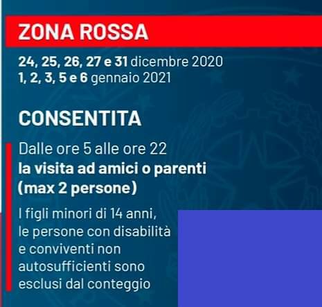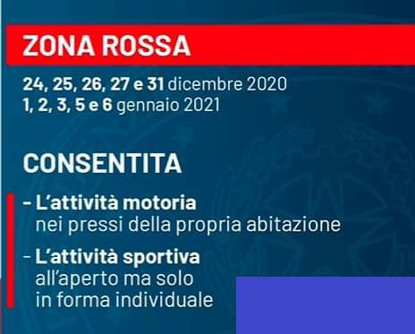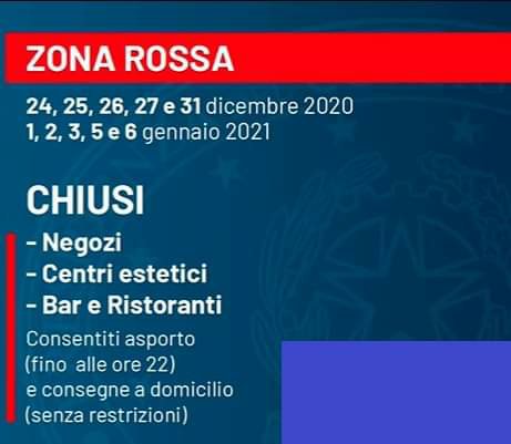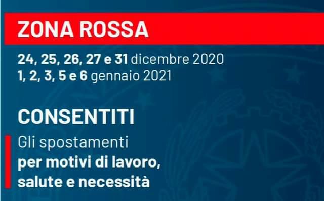 🔴 Nei giorni 24, 25, 26, 27 e 31 dicembre 2020, e nei giorni 1, 2, 3, 5 e 6 gennaio, in tutta Italia saranno in vigore le regole relative alla «zona rossa»