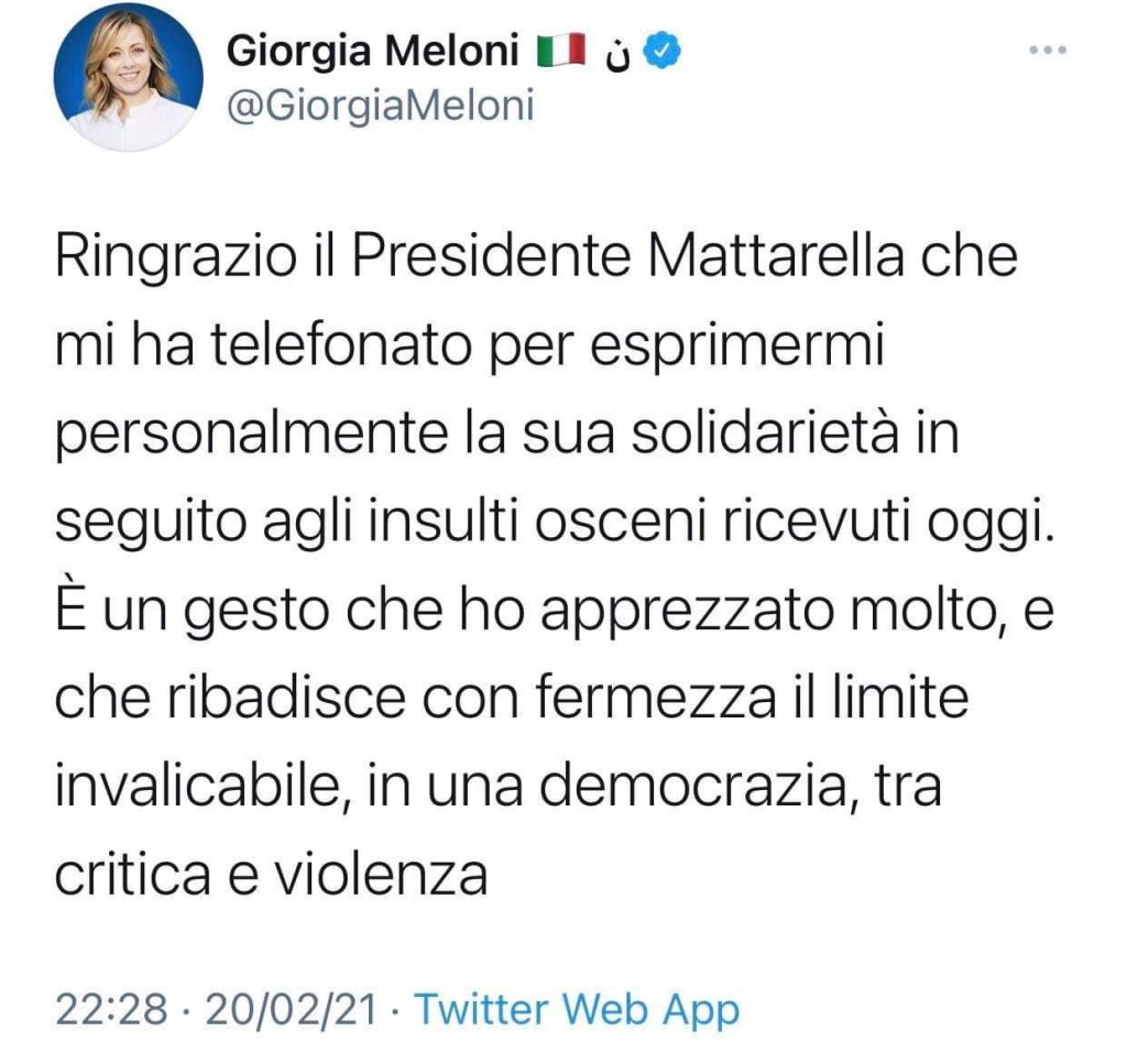 Addirittura le affermazioni e le offese contro Giorgia Meloni non sono finite nemmeno quando personalità come Il Presidente della Repubblica le ha dimostrato la sua solidarietà ‼️