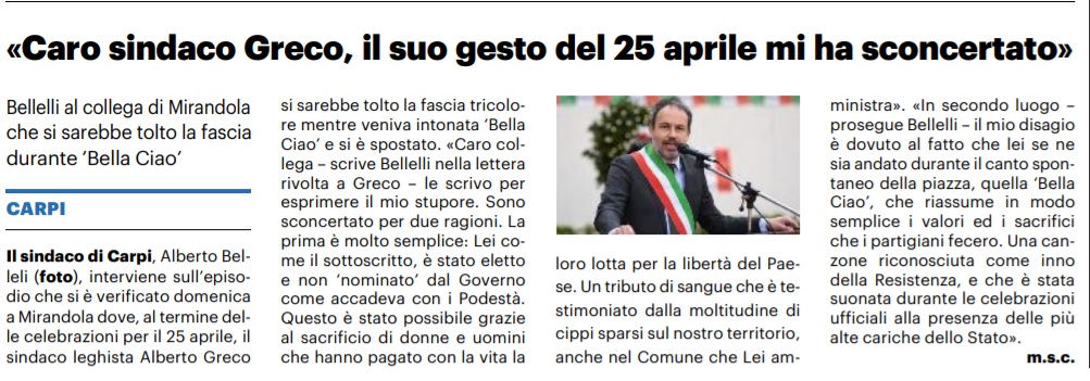 Alberto Greco, sindaco di Mirandola, sotto “attacco” da parte di chi? Del sindaco di Carpi Bellelli…….
