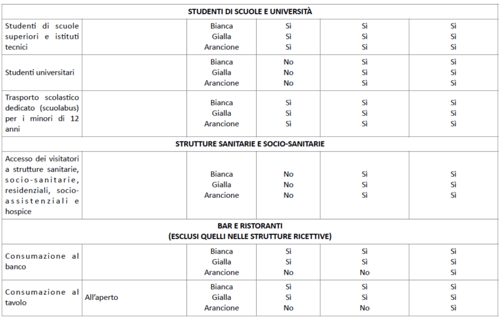 Cosa e consentito e cosa no con e senza Super Green Pass: la tabella delle attività consentite in zona Bianca, Gialla e Arancione.