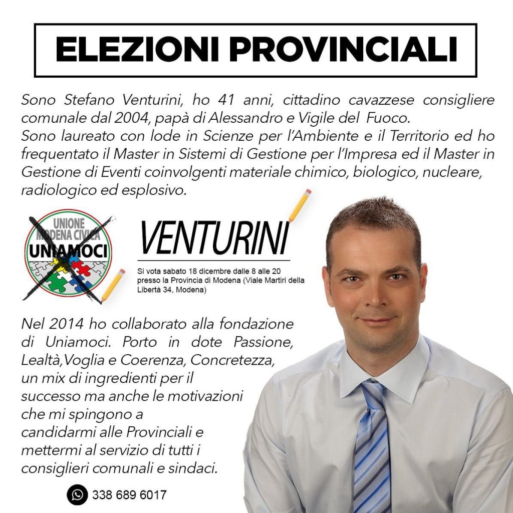 Con soddisfazione estrema comunico che Stefano Venturini è stato eletto Consigliere Provinciale ‼️ Sono Felice che la Provincia di Modena sia rappresentata da una persona per bene e competente come lui‼️ Avanti Tutta‼️