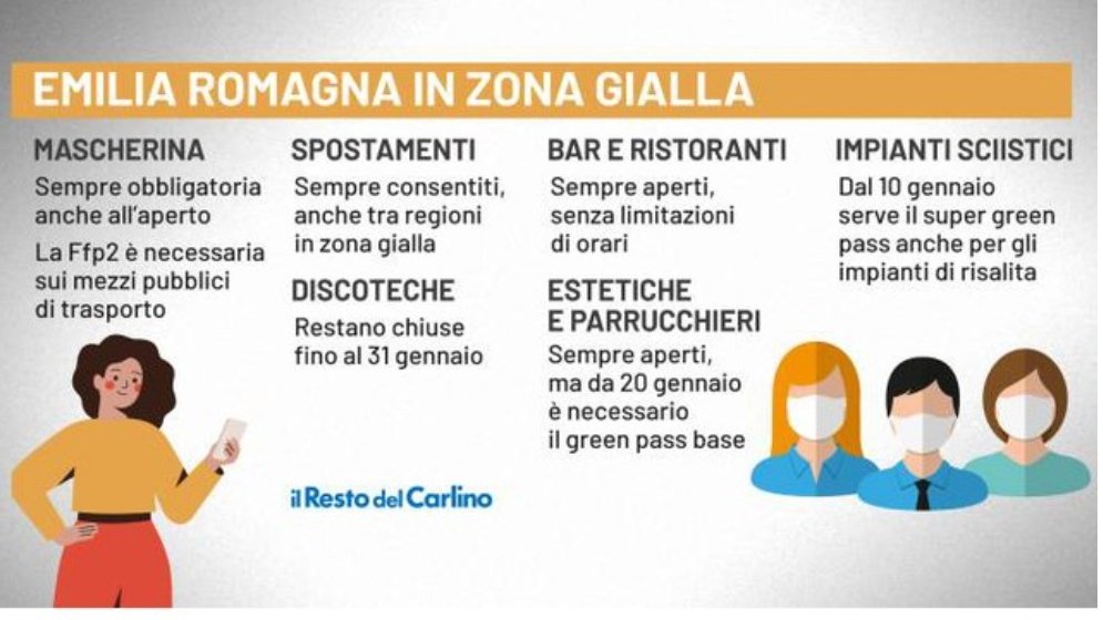 Per questi motivi, da lunedì 10 gennaio 2022 l’Emilia Romagna entrerà in zona gialla.