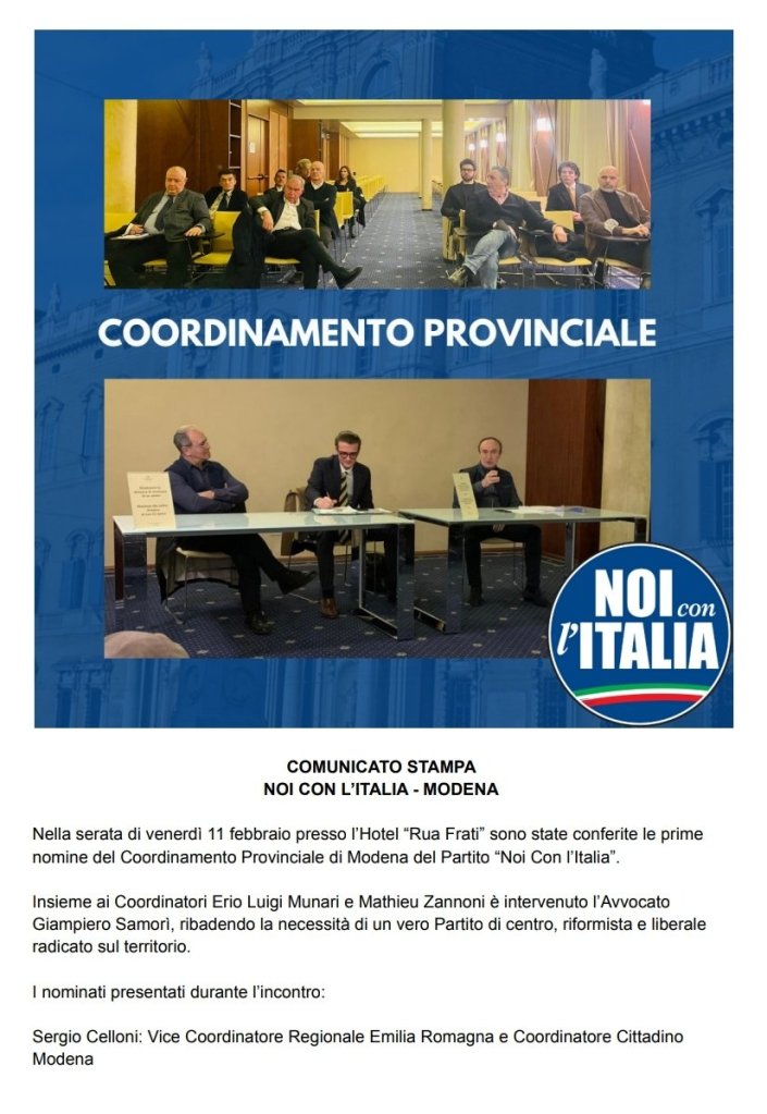 ASSOCIAZIONE LIBERTA' E SICUREZZA, Noi con l'Italia, PARLIAMO DI POLITICA, ULTIMA ORA Noi con l’Italia – nominato il Coordinamento Provinciale di Modena ⬇️ Condividi: Condividi su X (Si apre in una nuova finestra) X Condividi su Facebook (Si apre in una nuova finestra) Facebook Mi piace Caricamento... Correlati