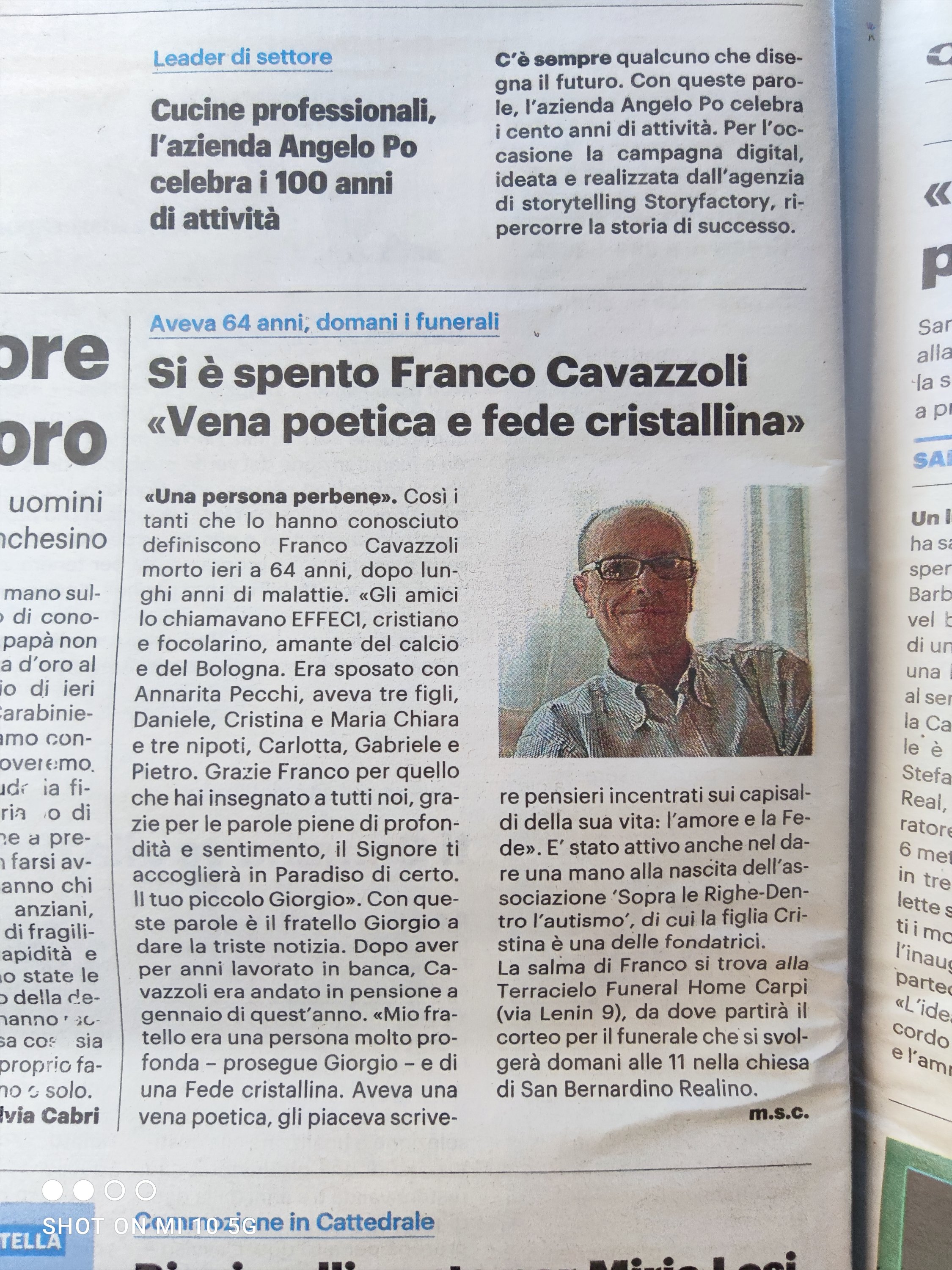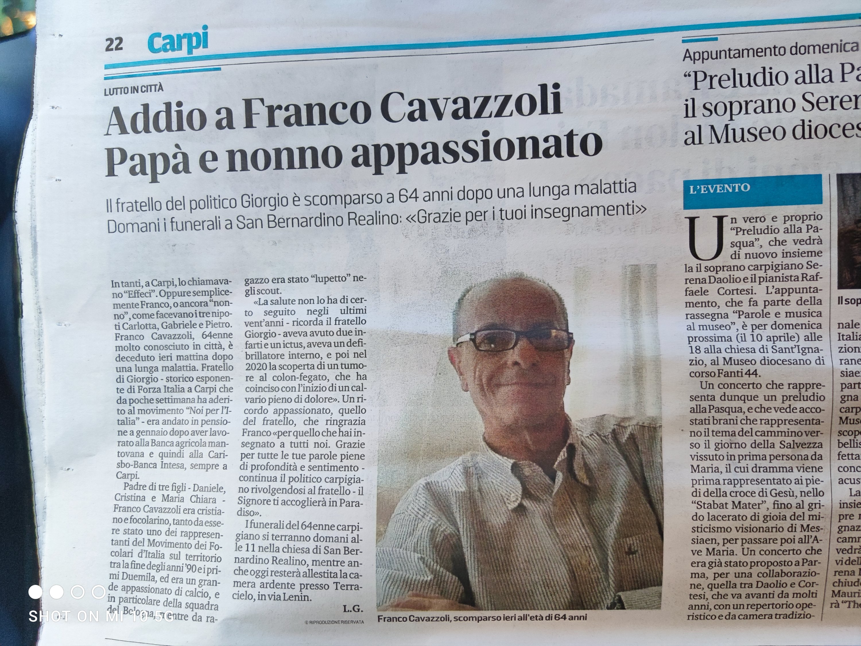 AMICI CHE CI HANNO LASCIATO, ASSOCIAZIONE LIBERTA' E SICUREZZA, PARLO DI ME, ULTIMA ORA Il ricordo di Franco Cavazzoli sui giornali di oggi🙏⬇️ Gazzetta di Carpi Il Resto del Carlino Condividi: Condividi su X (Si apre in una nuova finestra) X Condividi su Facebook (Si apre in una nuova finestra) Facebook Mi piace Caricamento... Correlati