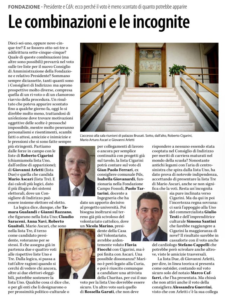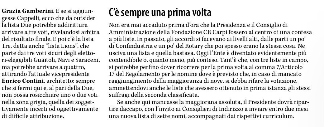 Come riportato dai “giornali” le tre liste potrebbero anche determinare sorprese….. In teoria la “Politica” non dovrebbe essere la SOLA discriminante…. Infatti I tre candidati alla presidenza sono di tutto rispetto…. Non riconducibili a questo o a quel partito: