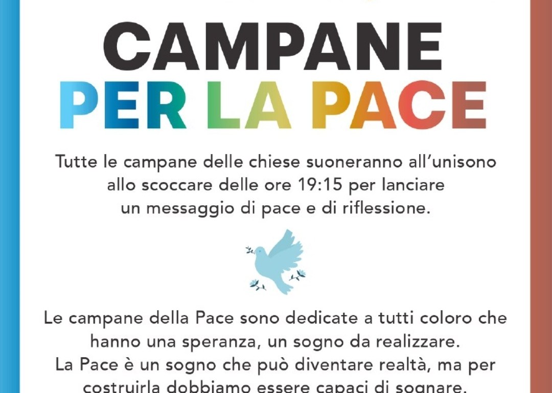 Alle 19.30, dopo i rintocchi all’unisono delle campane delle chiese cittadine – suoneranno alle 19.15 in punto – sul sagrato della Cattedrale interverranno una ventina di giovani della comunità di Nomadelfia per un momento di riflessione sull’impegno, a cui tutti sono chiamati, per costruire la pace e la fraternità.