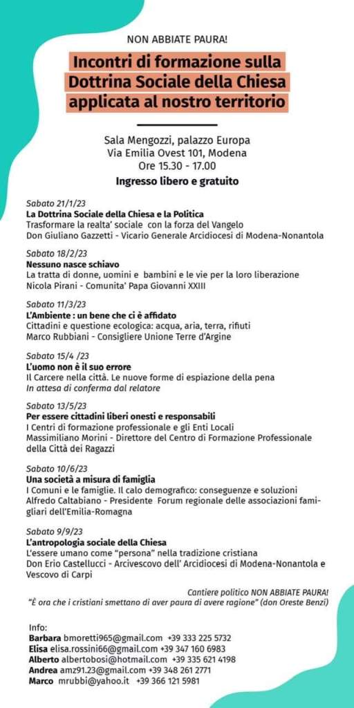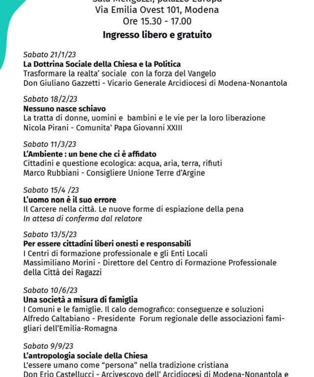 ASSOCIAZIONE LIBERTA' E SICUREZZA, Associazioni amiche, CRISTIANITA', La domenica di riflessione, Noi con l'Italia, PARLIAMO DI POLITICA Da sabato 21 gennaio a Modena, Palazzo Europa, corso sulla DOTTRINA SOCIALE DELLA CHIESA+ NON MANCARE 🙏 Condividi: Condividi su X (Si apre in una nuova finestra) X Condividi su Facebook (Si apre in una nuova finestra) Facebook Mi piace Caricamento... Correlati