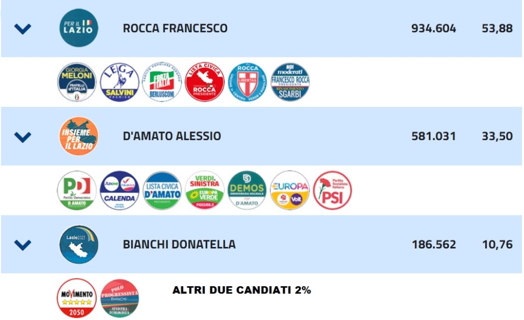 QUI SOPRA I DATI DELLE ELEZIONI NEL LAZIO