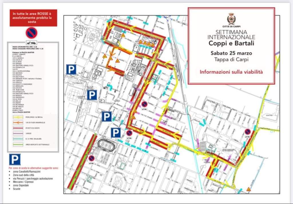 25 Marzo – Settimana Internazionale Coppi e Bartali – La mappa del percorso e come cambia la viabilitĂ a Carpi ⚠️