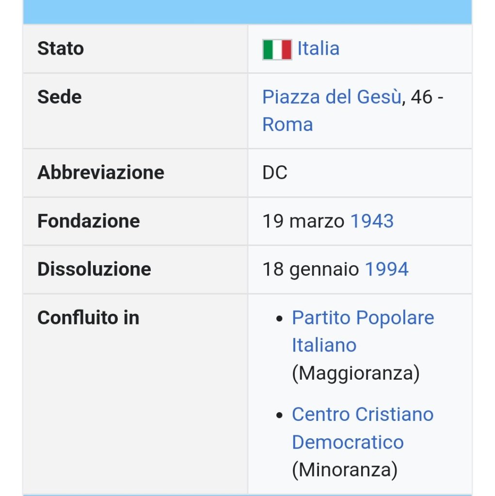 Lo dice anche Wikipedia…. Nel 1994 la DC si sarebbe “dissolta”…., il partito non è MAI stato sciolto o fuso in un’altra forza politica.