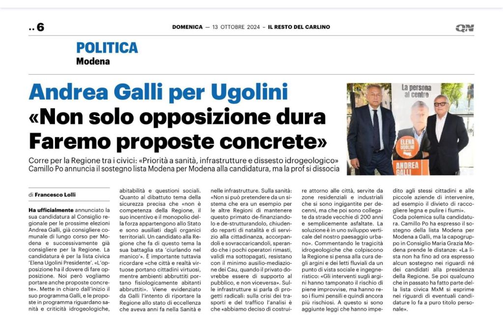 ASSOCIAZIONE LIBERTA' E SICUREZZA, Elena Ugolini, PARLIAMO DI POLITICA, ULTIMA ORA Andrea Galli riceve uno spazio importante sulla stampa dopo il lancio della sua candidatura VERSO IL VOTO, ANDREA GALLI LANCIA LA SUA CANDIDATURA https://www.lapressa.it/articoli/politica/lista-ugolini-a-modena-galli-anima-laica-in-un-gruppo-di-cattolici?fbclid=IwY2xjawF3TJtleHRuA2FlbQIxMQABHe4BB3iANbCb1m42RKipl92BUQUa44hQA60_o9uGhJym4bF3HDXTz8wcvA_aem_6b5GxPRa1V4erVtgBYK_dA Condividi: Condividi su X (Si apre in una nuova finestra) X Condividi su Facebook (Si apre in una nuova finestra) Facebook Mi piace Caricamento... Correlati