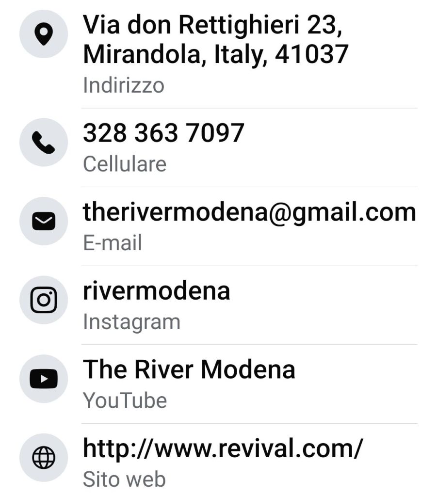 – info: 059.305104 – spiritosantomodena .com o scrivere a giacomo.mascolo@gmail.com per farsi inserire nella newsletter del Coetus Fidelium - 2)La Cena della River Church a Mortizzuolo ogni domenica alle 10.00 ed il martedì sera. Chiesa Pentecostale così definita protestante