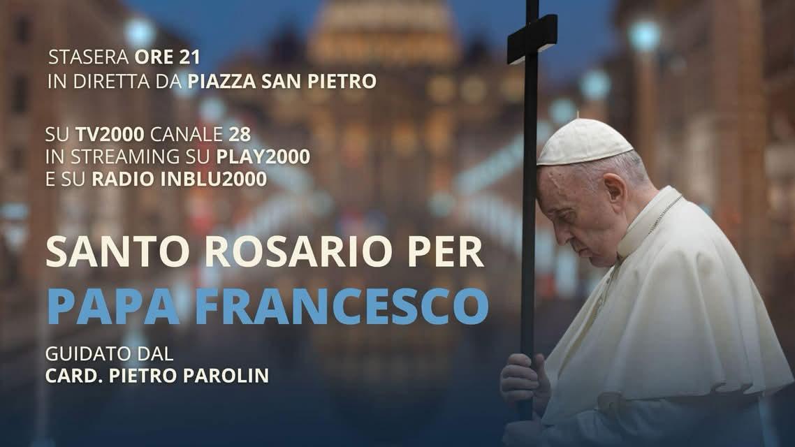 Questa sera, lunedรฌ 24 febbraio 2025, alle ore 21.00, segui su TV2000, il ๐ฆ๐ฎ๐ป๐๐ผ ๐ฅ๐ผ๐๐ฎ๐ฟ๐ถ๐ผ ๐ฝ๐ฒ๐ฟ ๐ฃ๐ฎ๐ฝ๐ฎ ๐๐ฟ๐ฎ๐ป๐ฐ๐ฒ๐๐ฐ๐ผ, guidato dal Cardinale Pietro Parolin in diretta da Piazza San Pietro. Canale 28