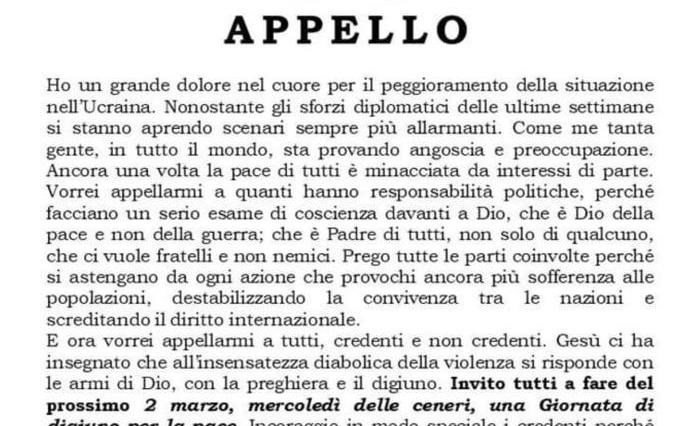 Papa Francesco Appello alla Pace🙏